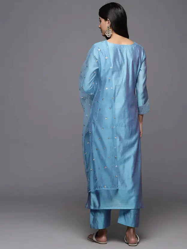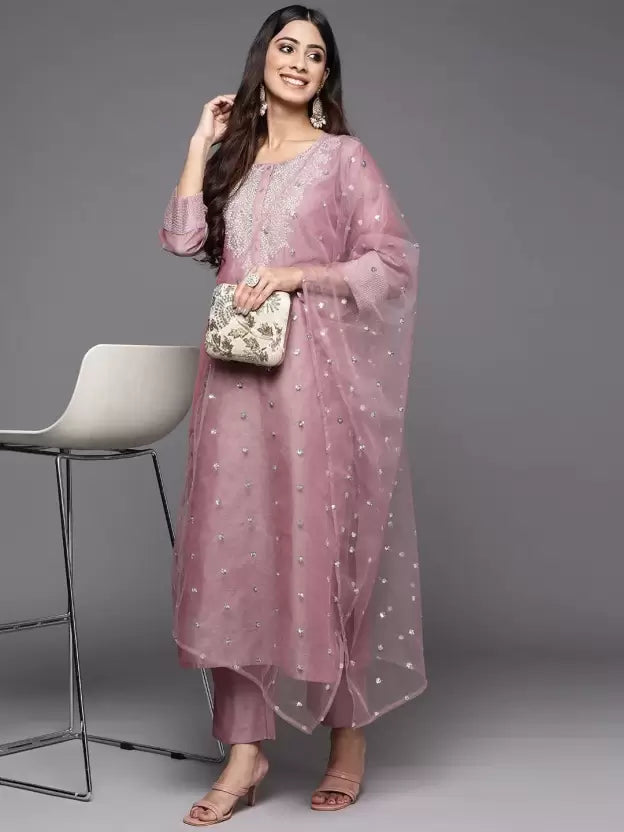 Kurta Fabric: Chanderi Silk Bottomwear Fabric: Chanderi Silk Fabric: Chanderi Silk Sleeve Length: Three-Quarter Sleeves Set Type: Kurta With Dupatta And Bottomwear Bottom Type: Pants Pattern: Printed Sizes: S (Bust Size: 36 in, Shoulder Size: 14.5 in, Kurta Waist Size: 34 in, Kurta Hip Size: 40 in, Kurta Length Size: 42 in, Bottom Waist Size: 27 in, Bottom Length Size: 37 in, Duppatta Length Size: 2.1 m) XL (Bust Size: 42 in, Shoulder Size: 16 in, Kurta Waist Size: 40 in, Kurta Hip Size: 46 in, Kurta Length Size: 42 in, Bottom Waist Size: 32 in, Bottom Length Size: 37 in, Duppatta Length Size: 2.1 m) L (Bust Size: 40 in, Shoulder Size: 15.5 in, Kurta Waist Size: 38 in, Kurta Hip Size: 44 in, Kurta Length Size: 42 in, Bottom Waist Size: 30 in, Bottom Length Size: 37 in, Duppatta Length Size: 2.1 m) M (Bust Size: 38 in, Shoulder Size: 15 in, Kurta Waist Size: 36 in, Kurta Hip Size: 42 in, Kurta Length Size: 42 in, Bottom Waist Size: 28 in, Bottom Length Size: 37 in, Duppatta Length Size: 2.1 m) XXL (Bust Size: 44 in, Shoulder Size: 16.5 in, Kurta Waist Size: 42 in, Kurta Hip Size: 48 in, Kurta Length Size: 42 in, Bottom Waist Size: 34 in, Bottom Length Size: 37 in, Duppatta Length Size: 2.1 m)