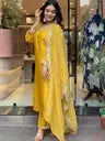 • Women Chanderi Kurti Pant Attached Dupatta Set