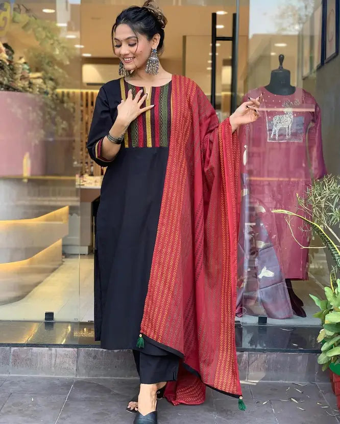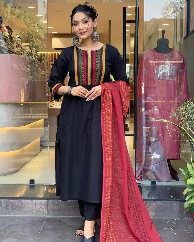 • Women Viscose Rayon Kurta Pant Dupatta Set