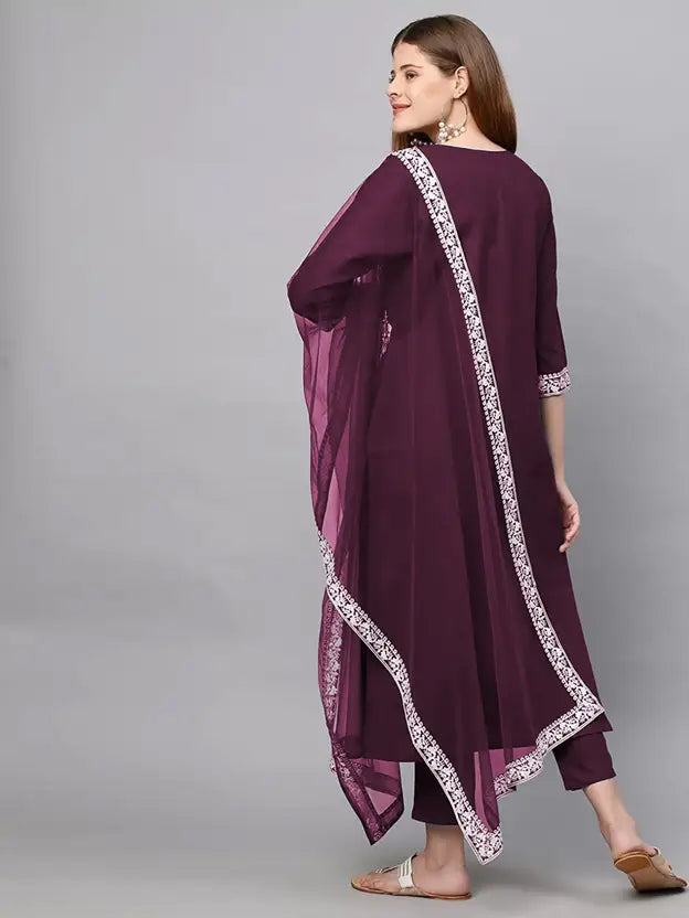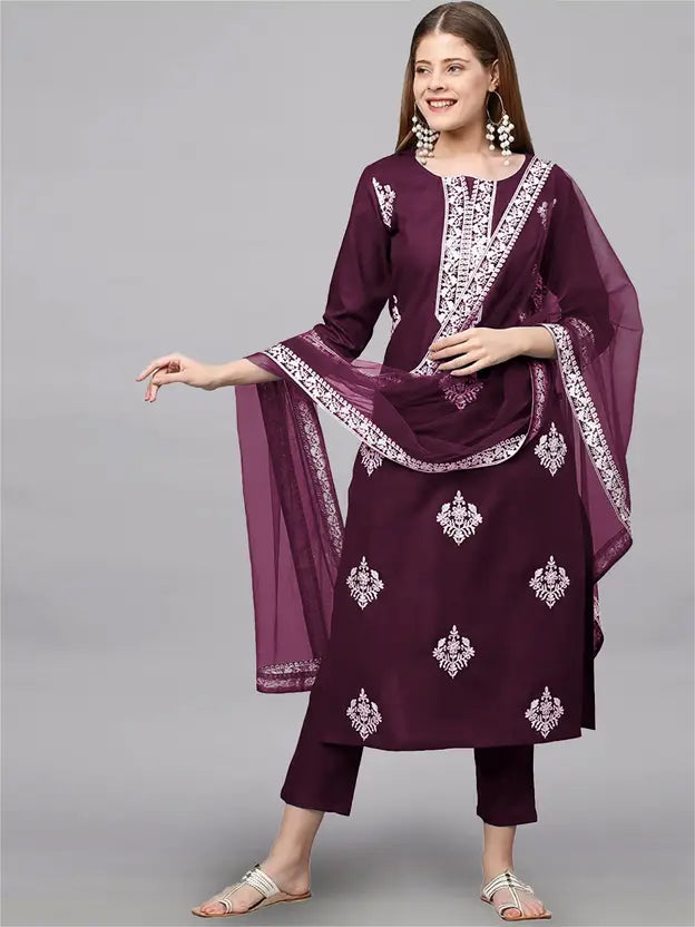 Women Viscose Rayon Kurta Pant Dupatta Set